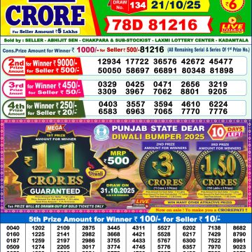 Nagaland State Lottery 1 PM Result Today 21.10.2025 LIVE: Dear Lottery Sambad Winner List