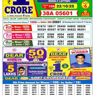 Nagaland State Lottery 1 PM Result Today 22.10.2025 LIVE: Dear Lottery Sambad Winner List