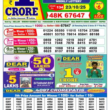 Nagaland State Lottery 1 PM Result Today 23.10.2025 LIVE: Dear Lottery Sambad Winner List
