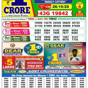 Nagaland State Lottery 1 PM Result Today 26.10.2025 LIVE: Dear Lottery Sambad Winner List