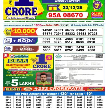 Nagaland State Lottery 1 PM Result Today 08.12.2025 LIVE: Dear Lottery Sambad Winner List