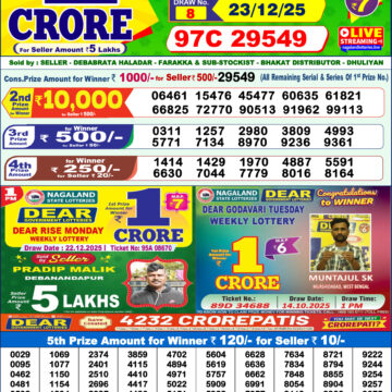 Nagaland State Lottery 1 PM Result Today 23.12.2025 LIVE: Dear Lottery Sambad Winner List