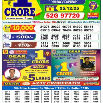 Nagaland State Lottery 1 PM Result Today 25.12.2025 LIVE: Dear Lottery Sambad Winner List