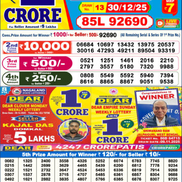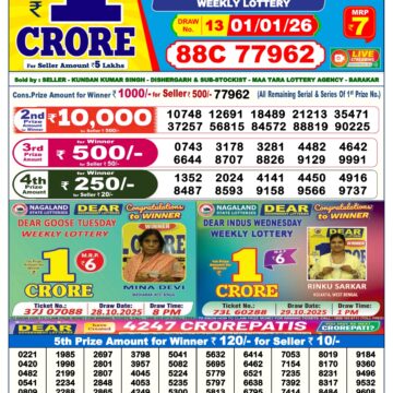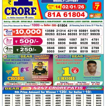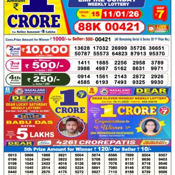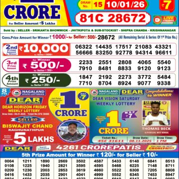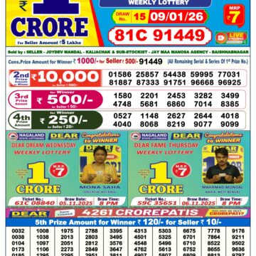 • LIVE: Nagaland State Lottery Dear Daily 8 PM Result Today 15.01.2026 – Check Winning Numbers