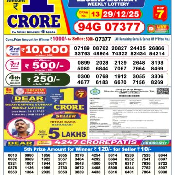 LIVE: Sikkim State Lottery Dear Daily 6 PM Result Today 29.12.2025