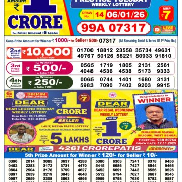 LIVE: Sikkim State Lottery Dear Daily 6 PM Result Today 07.01.2026