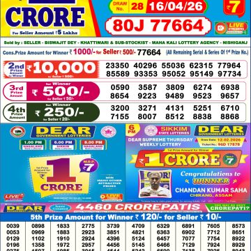 LIVE: Sikkim State Lottery Dear Daily 6 PM Result Today 16.04.2026