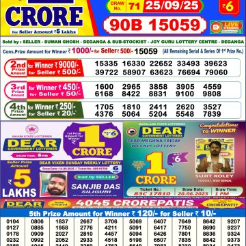LIVE: Sikkim State Lottery Dear Daily 6 PM Result Today 25.09.2025