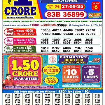 LIVE: Sikkim State Lottery Dear Daily 6 PM Result Today 27.09.2025