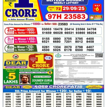 LIVE: Sikkim State Lottery Dear Daily 6 PM Result Today 05.10.2025
