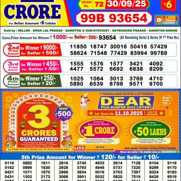 LIVE: Sikkim State Lottery Dear Daily 6 PM Result Today 03.10.2025