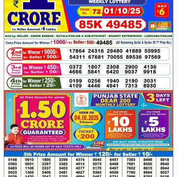 LIVE: Sikkim State Lottery Dear Daily 6 PM Result Today 01.10.2025