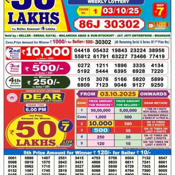 • Goa State Lottery Rajshree 50 Result 7:30 PM Today 10.11.2025 LIVE