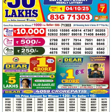 LIVE: Sikkim State Lottery Dear Daily 6 PM Result Today 04.10.2025