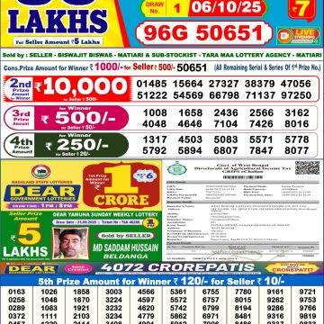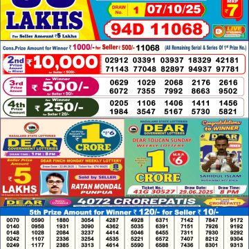 LIVE: Sikkim State Lottery Dear Daily 6 PM Result Today 07.10.2025