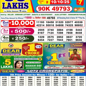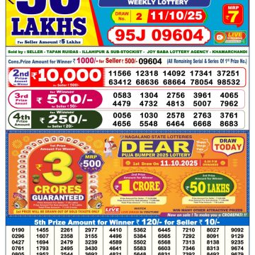 • LIVE: Nagaland State Lottery Dear Daily 8 PM Result Today 10.11.2025 – Check Winning Numbers