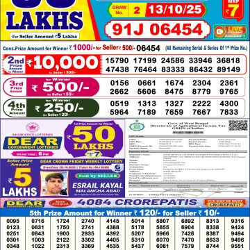 LIVE: Sikkim State Lottery Dear Daily 6 PM Result Today 13.10.2025