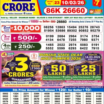 LIVE: Sikkim State Lottery Dear Daily 6 PM Result Today 23.03.2026