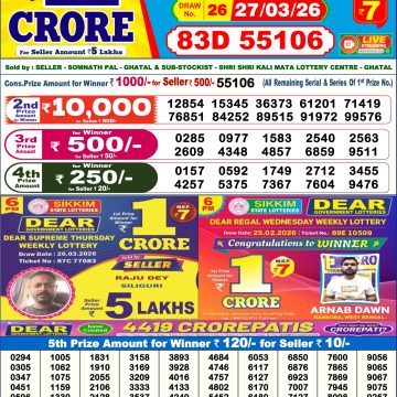 LIVE: Sikkim State Lottery Dear Daily 6 PM Result Today 26.03.2026