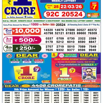 LIVE: Sikkim State Lottery Dear Daily 6 PM Result Today 22.03.2026