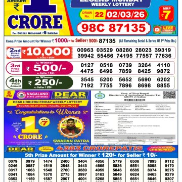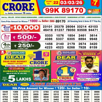 LIVE: Nagaland State Lottery Dear Daily 8 PM Result Today 06.03.2026 – Check Winning Numbers