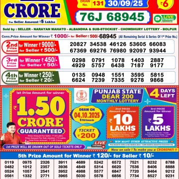 LIVE: Nagaland State Lottery Dear Daily 8 PM Result Today 30.09.2025 – Check Winning Numbers