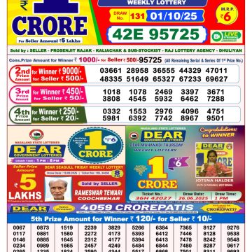 LIVE: Nagaland State Lottery Dear Daily 8 PM Result Today 01.10.2025 – Check Winning Numbers