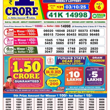 LIVE: Nagaland State Lottery Dear Daily 8 PM Result Today 03.10.2025 – Check Winning Numbers