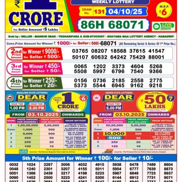 LIVE: Nagaland State Lottery Dear Daily 8 PM Result Today 04.10.2025 – Check Winning Numbers