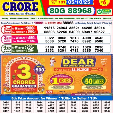 LIVE: Nagaland State Lottery Dear Daily 8 PM Result Today 05.10.2025 – Check Winning Numbers