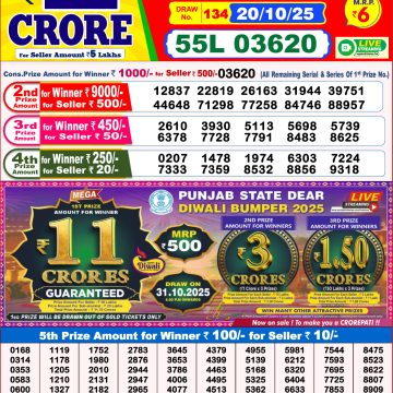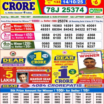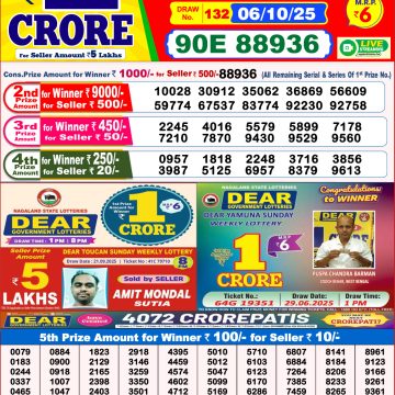 LIVE: Nagaland State Lottery Dear Daily 8 PM Result Today 06.10.2025 – Check Winning Numbers