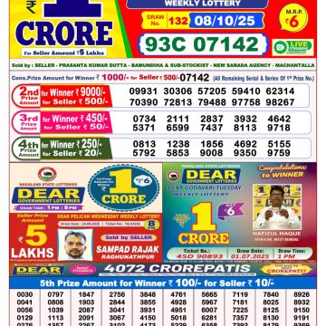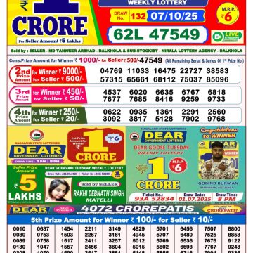 LIVE: Nagaland State Lottery Dear Daily 8 PM Result Today 07.10.2025 – Check Winning Numbers