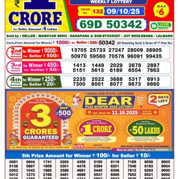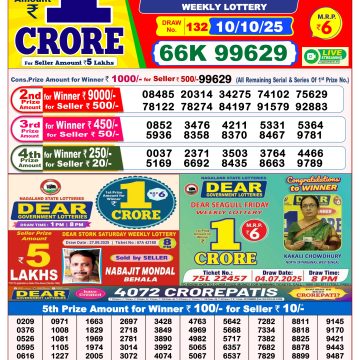 LIVE: Nagaland State Lottery Dear Daily 8 PM Result Today 10.10.2025 – Check Winning Numbers