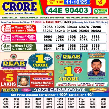 LIVE: Nagaland State Lottery Dear Daily 8 PM Result Today 11.10.2025 – Check Winning Numbers