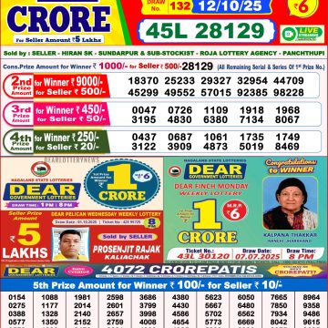 LIVE: Nagaland State Lottery Dear Daily 8 PM Result Today 12.10.2025 – Check Winning Numbers