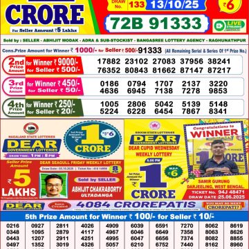 LIVE: Nagaland State Lottery Dear Daily 8 PM Result Today 13.10.2025 – Check Winning Numbers