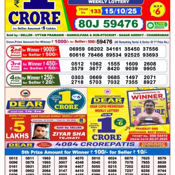 LIVE: Nagaland State Lottery Dear Daily 8 PM Result Today 16.10.2025 – Check Winning Numbers