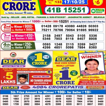 LIVE: Nagaland State Lottery Dear Daily 8 PM Result Today 17.10.2025 – Check Winning Numbers