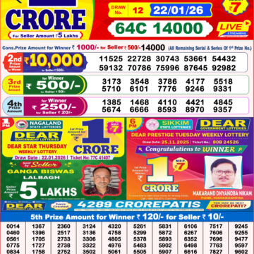 LIVE: Nagaland State Lottery Dear Daily 8 PM Result Today 22.01.2026 – Check Winning Numbers