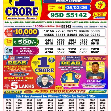 LIVE: Nagaland State Lottery Dear Daily 8 PM Result Today 05.02.2026 – Check Winning Numbers