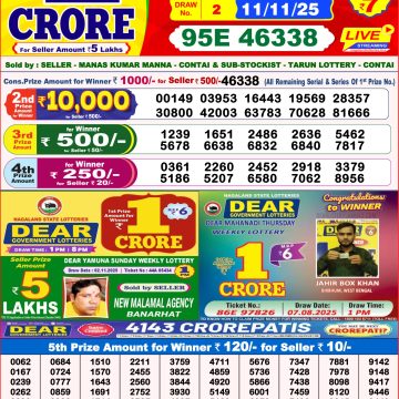 LIVE: Nagaland State Lottery Dear Daily 8 PM Result Today 11.11.2025 – Check Winning Numbers