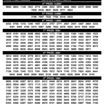 Check Dear Lottery Chart Kerala Lottery Results Online