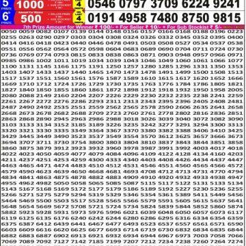 Check Dear Lottery Chart Kerala Lottery Results Online
