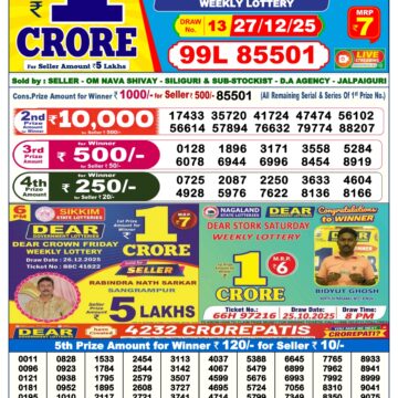 LIVE: Sikkim State Lottery Dear Daily 6 PM Result Today 27.12.2025