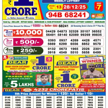 • LIVE: Nagaland State Lottery Dear Daily 8 PM Result Today 15.01.2026 – Check Winning Numbers