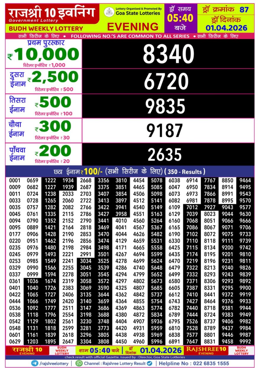 LIVE: Goa Rajshree 10 Lottery Result 5:40 PM Today 01.04.2026 April 1, 2026 Leave a Comment on LIVE: Goa Rajshree 10 Lottery Result 5:40 PM Today 01.04.2026 Posted in Results Share: XFacebookPinterestRedditVKDiggLinkedinMix
