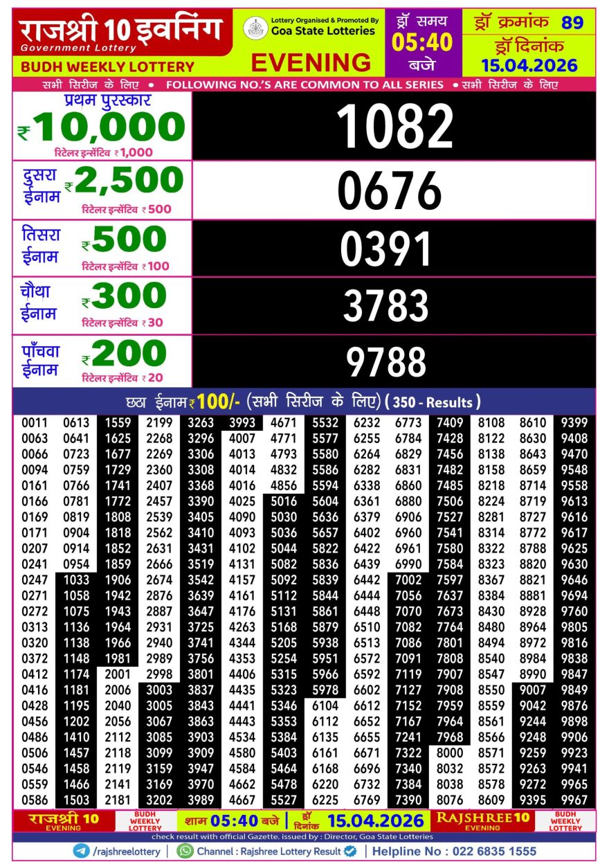 LIVE: Goa Rajshree 10 Lottery Result 5:40 PM Today 15.04.2026 April 15, 2026 Leave a Comment on LIVE: Goa Rajshree 10 Lottery Result 5:40 PM Today 15.04.2026 Posted in Results Share: XFacebookPinterestRedditVKDiggLinkedinMix