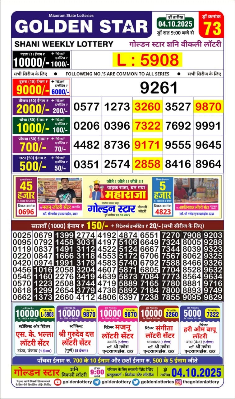 Mizoram State Lottery Golden 9 PM Result 04.10.2025 LIVE: Check Today’s Winning Numbers October 4, 2025 Leave a Comment on Mizoram State Lottery Golden 9 PM Result 04.10.2025 LIVE: Check Today’s Winning Numbers Posted in Golden 9pm result Share: XFacebookPinterestRedditVKDiggLinkedinMix