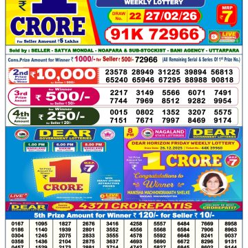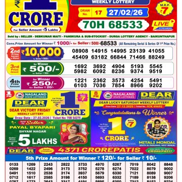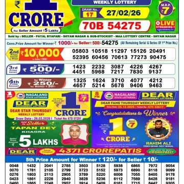 LIVE: Nagaland State Lottery Dear Daily 8 PM Result Today 27.02.2026 – Check Winning Numbers