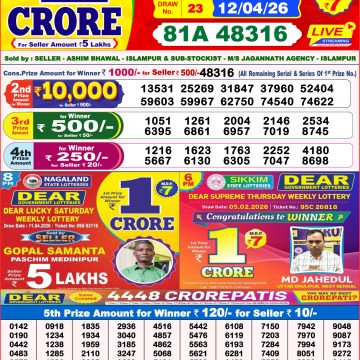 LIVE: Sikkim State Lottery Dear Daily 6 PM Result Today 12.04.2026